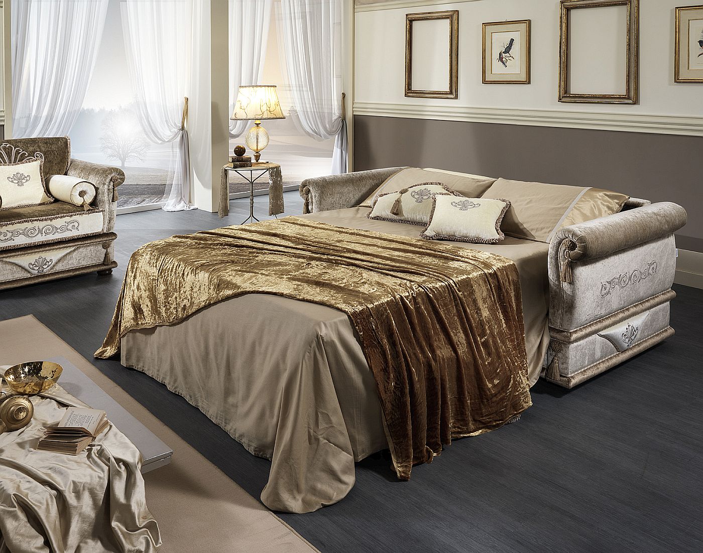Nella versione letto, il divano è inoltre completamente smontabile a baionetta, una caratteristica studiata per facilitare trasporto e consegna anche in condizioni complesse, come passaggi stretti, scale o finestre di dimensioni ridotte, senza compromettere la solidità dell’insieme una volta montato.