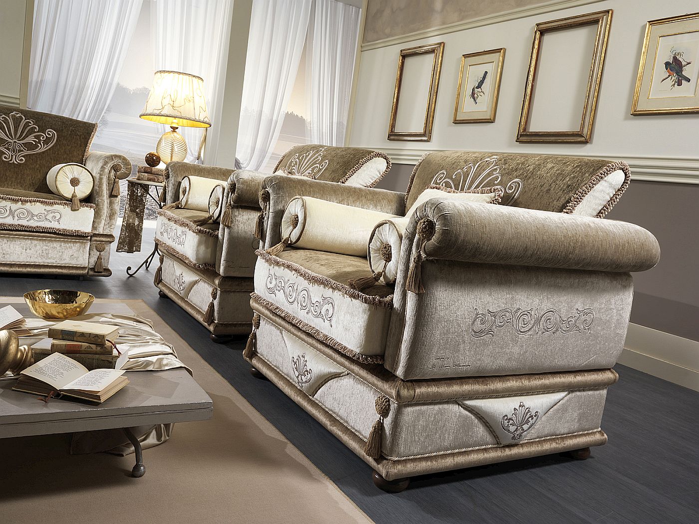 La qualità artigianale emerge in ogni dettaglio: il divano è ricamato e personalizzabile, con la possibilità di scegliere tessuti, finiture e configurazioni su misura per adattarsi perfettamente allo stile dell’ambiente. I ricami possono essere omessi su richiesta, per ottenere un’estetica più essenziale e pulita, in linea con gusti minimal o contemporanei. Inoltre, seduta e schienale sono completamente sfoderabili, garantendo praticità nella manutenzione e una gestione semplice nel tempo.